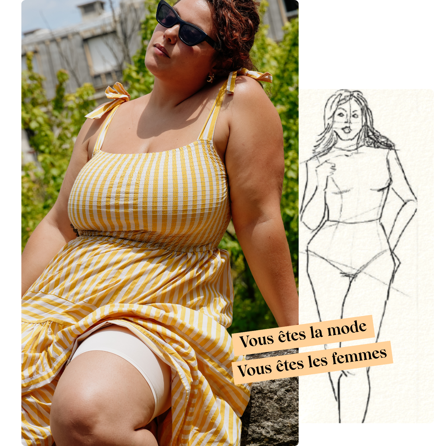 Tous les corps existent et méritent d’être vus. Chez Cuissoh, nous travaillons avec une diversité de femmes, de tailles et de silhouettes et nous concevons nos vêtements du 34 au 64.